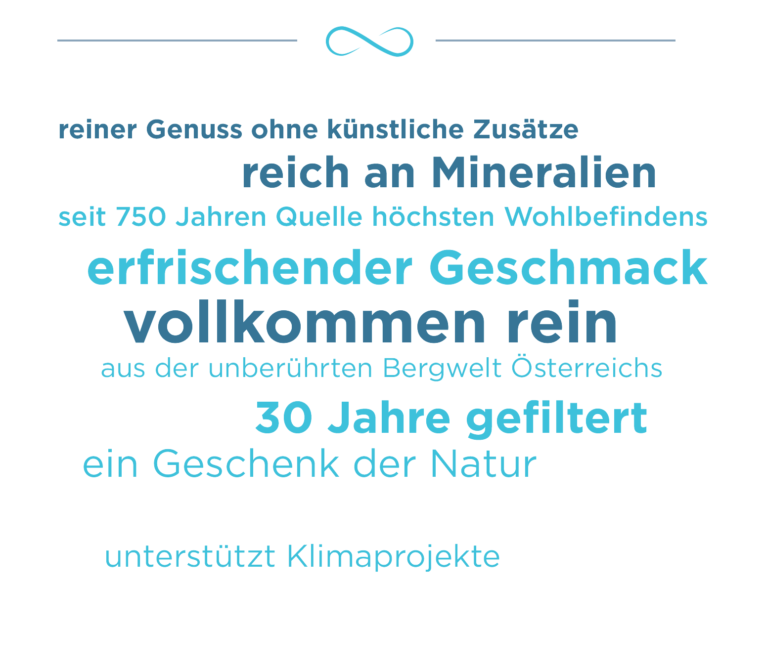 Es beginnt mit dem Regen, der in der unberührten Landschaft Österreichs auf die Felsen der Bergriesen prasselt und langsam in Felsspalten versickert. Anschließend sucht sich das Wasser seinen Weg durch die verschiedenen, vollkommen unbelasteten Gesteinsschichten und reichert sich mehr und mehr mit kostbaren Mineralien an.